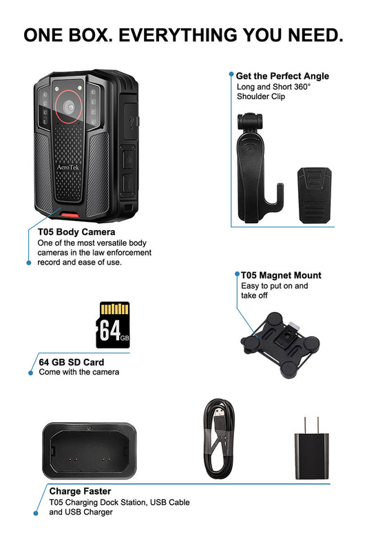 AeroTeK T03 2K Body Camera with 64GB Micro SD Card